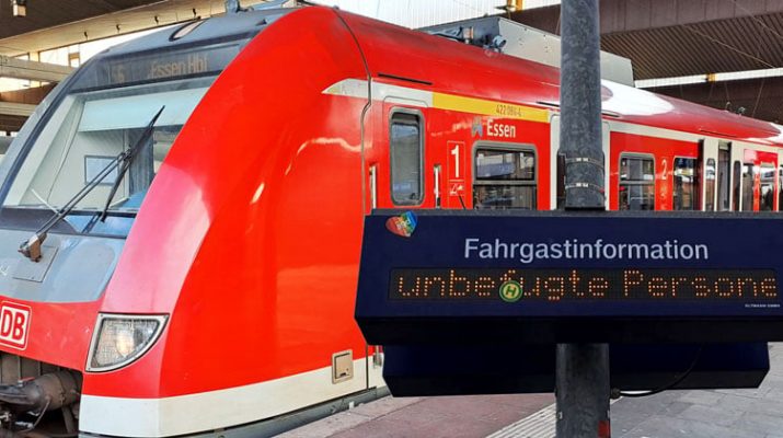 „S6 nach Essen, Abfahrt 13.21 Uhr, fällt heute aus. Grund dafür sind unbefugte Personen auf der Strecke.“
