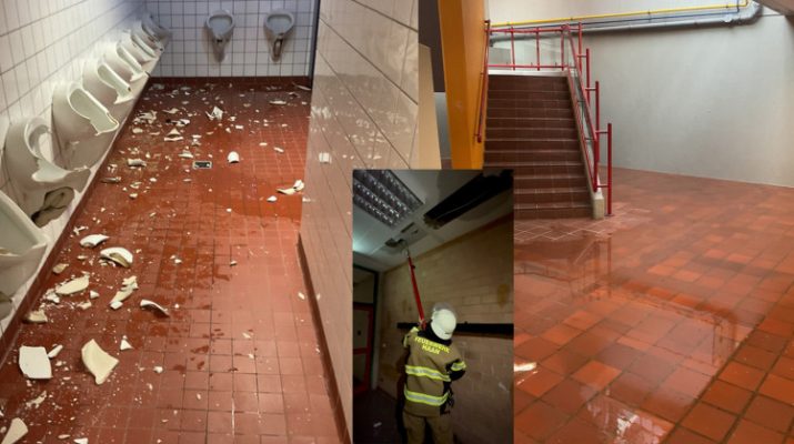 Unbekannte Täter hatten in mehreren Bereichen des Schulgebäudes erhebliche Zerstörungen angerichtet. Besonders betroffen ist der Verwaltungsbereich. Dort wurden die Toilettenanlagen vollständig zerstört, wodurch sich große Wassermengen über die gesamte Etage sowie in darunterliegende Geschosse ausbreiteten. Türen und Mobiliar wurden eingeschlagen. Auch im Schülercafé gingen die Täter mit massiver Gewalt vor und beschädigten unter anderem die Sanitärbereiche.