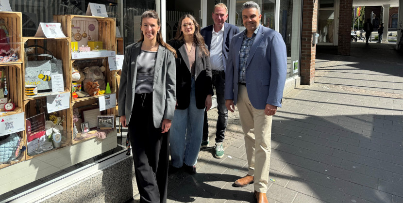 BUZ: v.l.: Hanne Schwabe (Wirtschaftsförderung der Stadt Haan), Jasmin Eitner (Digitalcoach NRW), Dr. Jürgen Simon (Amtsleiter Wirtschaftsförderung der Stadt Haan), Björn Musiol (Geschäftsführer Handelsverband Rheinland).