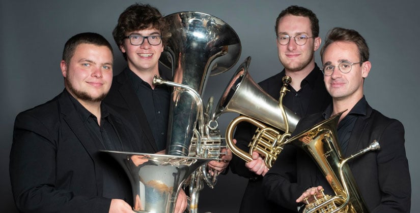 In der Konzertreihe „Live im Carré – The professional Line“ in Zusammenarbeit mit der städtischen Kulturarbeit präsentiert die Musikschule Haan am Freitag, 20. Februar 2026, das Tessera-Tuba-Quartett. Das Konzert startet um 19:30 Uhr im Forum Dieker Carré.